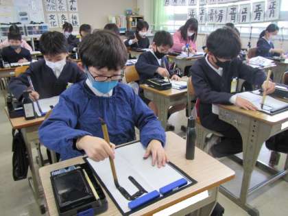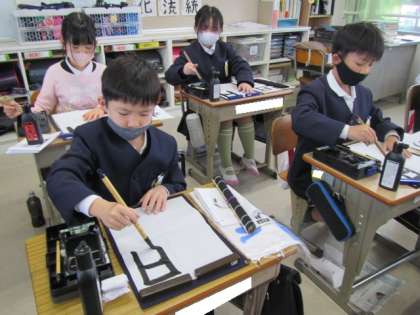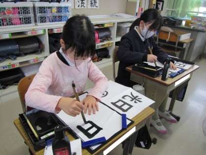 今日の課題は「日の光」です。漢字とひらがなの大きさに気をつけながら書きます。バランスよく書けるよう練習しています♪