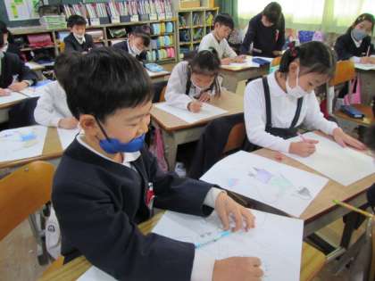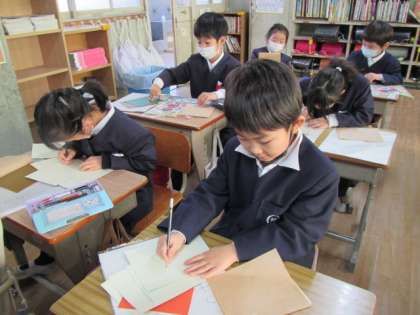 1月20日(金) 1年生図工「シール版画を始めました」♪