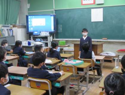 休日のできごとについて順番に発表します。今日担当の児童もはっきりとした声で発表できていました♪