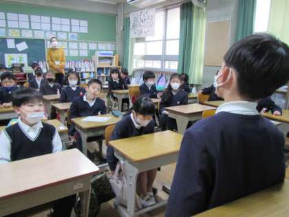 1月23日(月) 1年生朝の会「休日のできごと」♪