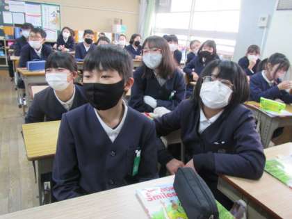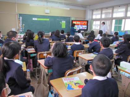 1月23日(月) 5年生外国語「学校の中で好きな場所は」♪