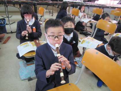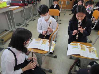 国語で学習した物語「ごんぎつね」の音読劇を計画しています。合間に挿入するリコーダー合奏の練習をしています。おもしろそうですね♪