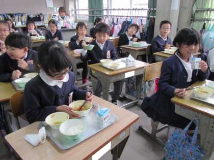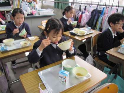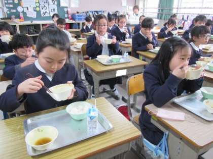 今日もみんなおいしそうに頂いています。昼になりかなり冷え込んできました。あったかいちゃんこ汁,うれしいね♪