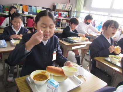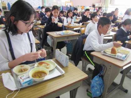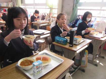 給食の時間が始まりました。今日もおいしくいただきましょう♪