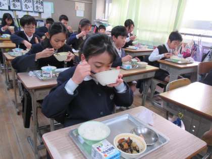 給食の時間が始まりました。今日もおいしくいただきましょう♪