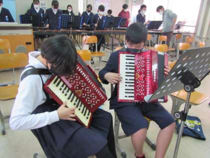 1組は「新時代」に挑戦します。それぞれのパートで協力しながら練習を進めています♪