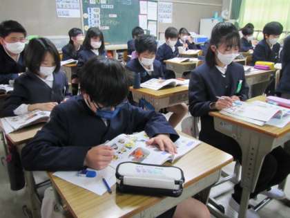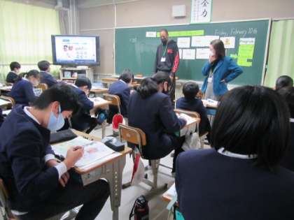 聞き取りの学習です。今日は,ネイティブの先生の言葉を聞き取り,メモにまとめます。みんな,話すほうだけでなく,聞くこともとても上手になっています♪