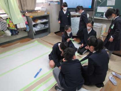 6年生教室の飾りつけについてみんなで考え,作業を進めています。みんなで作業を分担し。できることをどんどん進めています♪