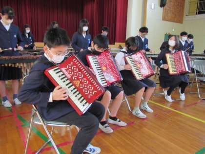 日に日に上手になっています。大迫力の合奏です。6年生保護者のみなさま,乞うご期待です♪
