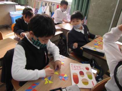 3月7日(火) 1年生算数「かたちあそび」♪