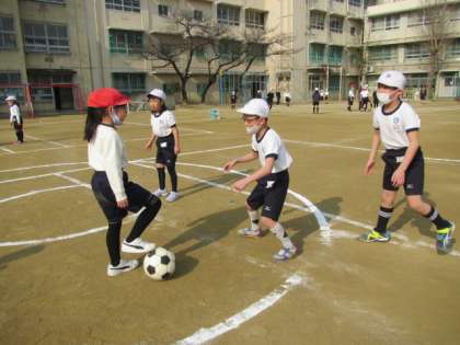 3月8日(水) 2年生体育「ボールけりおに」♪