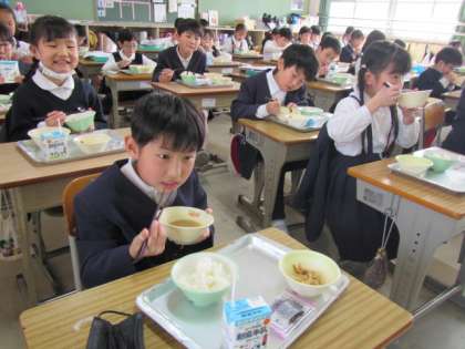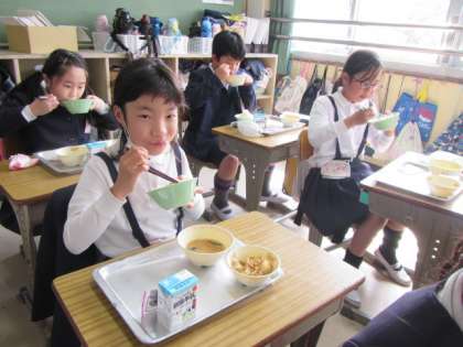 給食の時間が始まりました。今日もおいしくいただきましょう♪