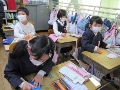 新しい1年生に向けてプレゼント作成中!みんなとっても生き生きと作業しています♪