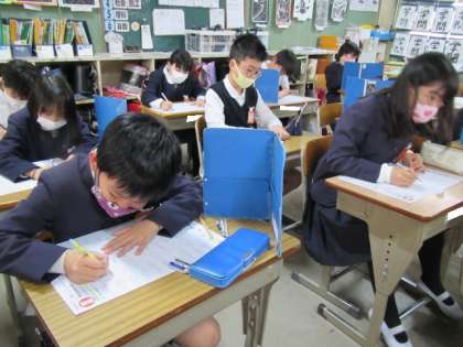 1年間で学習してきた漢字のまとめのテストに取り組んでいました。しっかり覚えているかな。