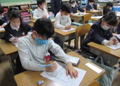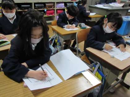 1年間の自分の学校生活、学習について振り返っています。いちばんがんばったのはどんなことかな、もっとがんばりたいのはどんなことかな♪