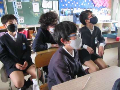社会の学習で世界の国々について調べています。お気に入りの国を選び、その国について調べ、まとめました。今日は友だちにしっかり報告しています♪