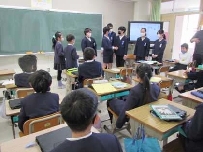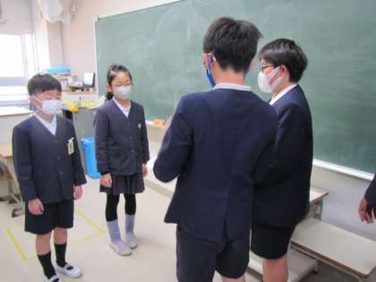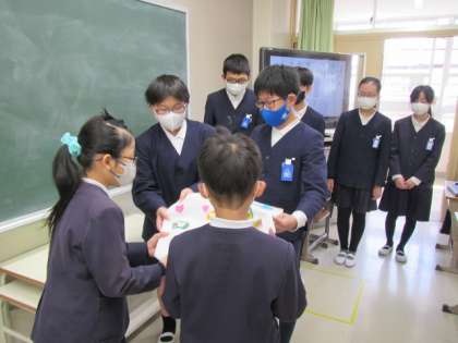3年生教室に6年生の児童が。たてわり活動でのお手紙のお返しを届けてくれました。自分たちで縫ったぞうきんもプレゼントしてくれました♪