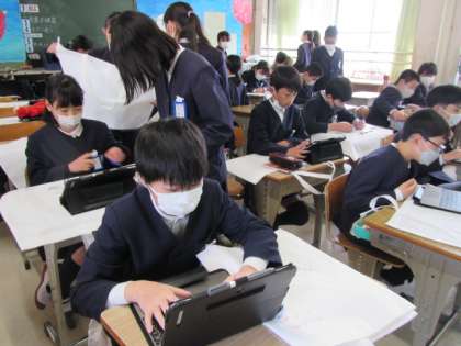 3月14日(火) 6年生図工「作品袋 作成中です」♪