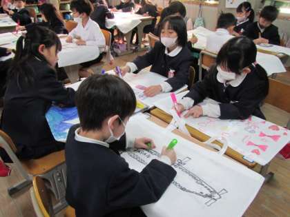 3月15日(水) 1年生図工「作品ぶくろ」♪
