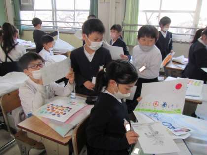 学年末に向けての荷物の整理が始まっています。絵具やけんばんハーモニカなども計画的に持って帰るようにしようね♪