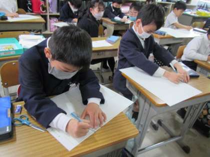 方眼紙を使って、できるだけ大きなサイコロを作ってみよう。みんな、しっかり考え、作業していました♪