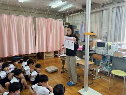 小学校で初めての身体測定の様子です。