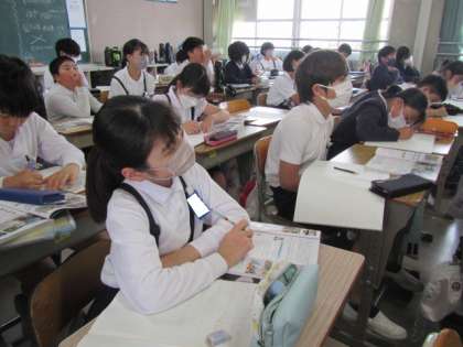 自然災害が起こった時の国の役割について学習しています。実際の災害後の様子、復興後の様子を写真で見、気づいたことを書き込んでいました♪