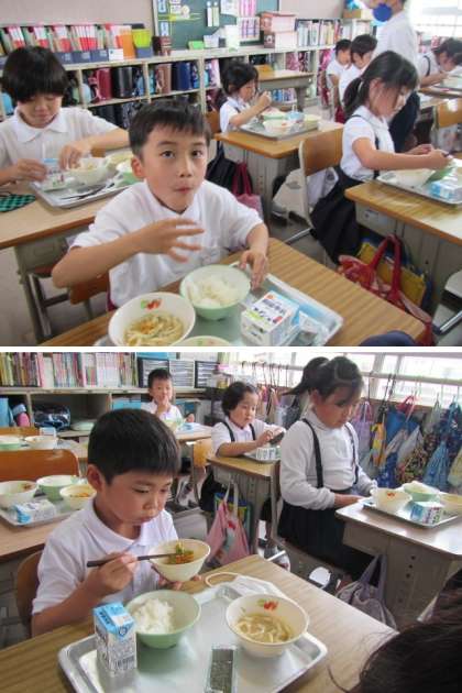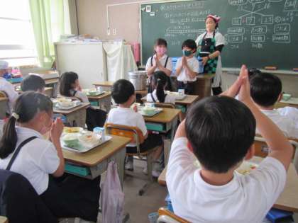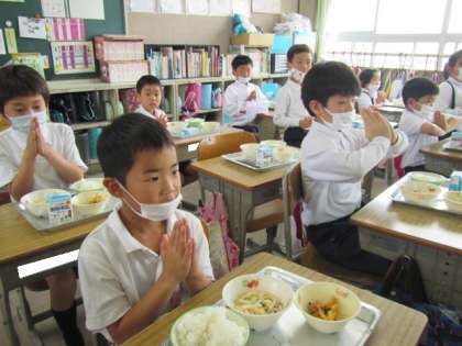 給食の時間が始まりました。今日もおいしくいただきましょう♪