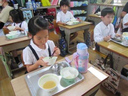今日は和食給食です。おわんによそったご飯を頂きます♪