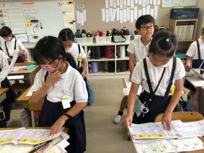 これまで学習してきた漢字の読みをできるだけ早く読みます。みんな集中して取り組んでいました♪