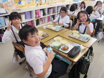 給食の時間が始まりました。今日もおいしくいただきましょう♪