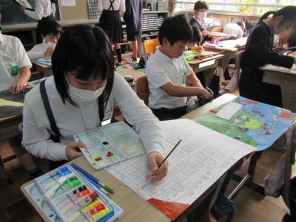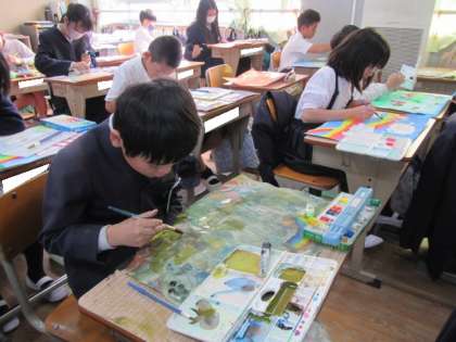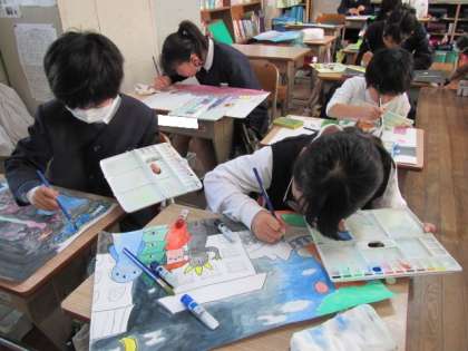 物語の世界を描きます。みんな、自分のすきな場面の様子についてイメージを深めて描いていました♪