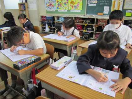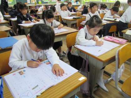 今日は新しい漢字「名」を学習しました。名前の「な」だけでなく、氏名の「めい」、名字の「みょう」といった読み方もあることを知り、おどろいていました。書き順の確認をして練習に取りかかります♪