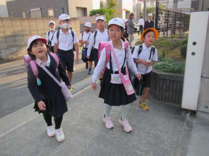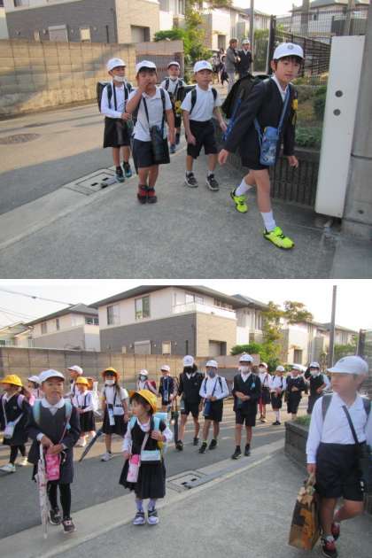 さわやかな秋の日の光が子どもたちに降り注いでいます。みんな元気に登校してきてくれています♪