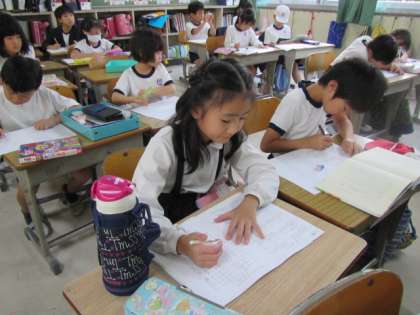 かけ算名人をめざして練習問題に取り組んでいます。かけ算は使うことで覚えます。どんどん使っていきましょうね♪