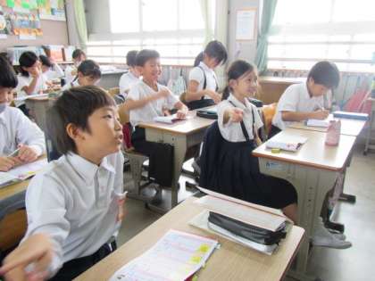 今日新しく学習した漢字は「底」でした。6画目の横画が左から右に向かうこと、全体で確認していました♪