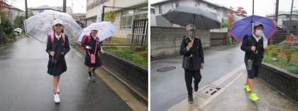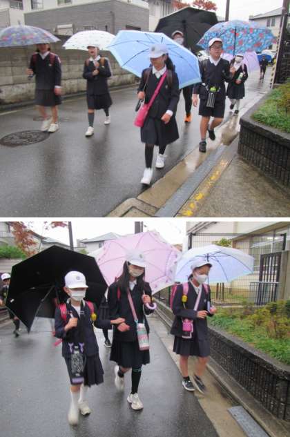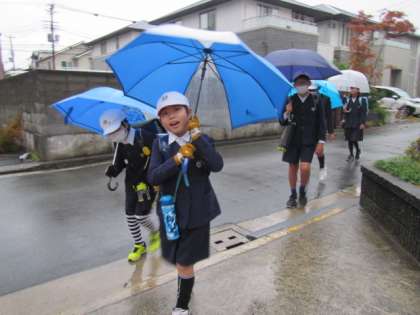 傘をさしての登校となりました。いい表情で登校してきてくれています♪
