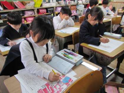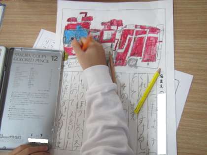 説明文「じどう車くらべ」の本文をまねて、自分のお気に入りのじどう車を紹介します。みんな集中して取り組んでいます♪