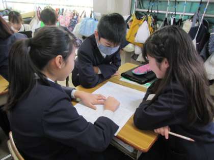 調理実習の計画を立てています。みんなで協力をしておいしい料理をつくりあげようね♪