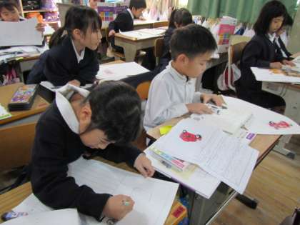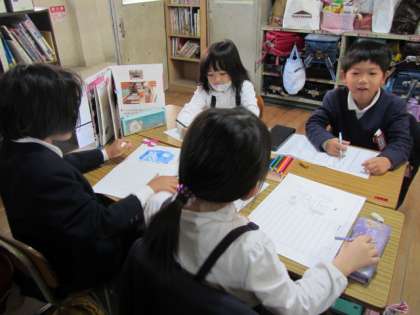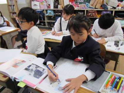 説明文「じどう車くらべ」の学習のまとめとして、本文をまねて、自分のお気に入りの自動車の説明文をつくっています。みんな熱心に取り組んでいます♪