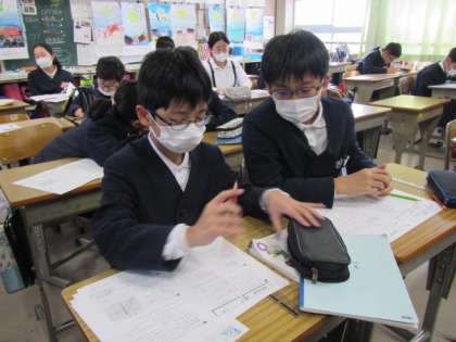 関数の学習に取り組んでいます。比例、反比例の関係を探っていました♪