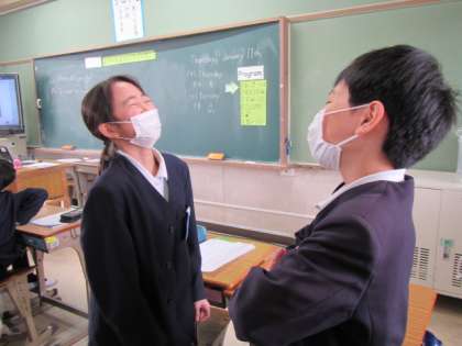 ウォーミングアップ会話、みんなで冬休みに行った場所を聞きあっていました。