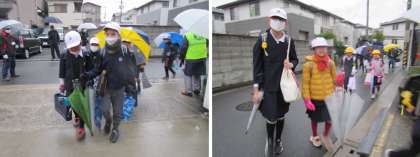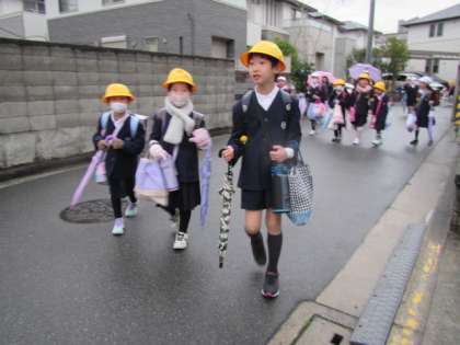 小雨が降ったりやんだりの天気です。みんな元気に登校してきてくれています♪