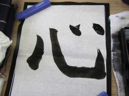 みんな、半紙を大胆に使って、大きく「心」を書いています。おおらかな心で取り組むことができています♪