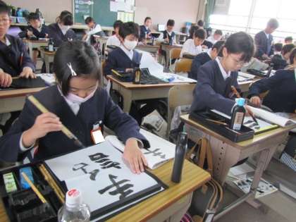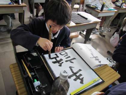 今日の課題は「手話」です。ダイナミックに書く「手」と、大きさのバランスが大切な「話」を一枚につづります♪