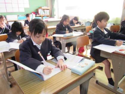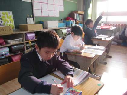 大きな数の数え方について学習しています。みんな、一生懸命黒板を見ながら考えていました♪