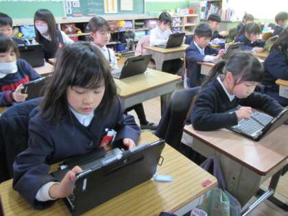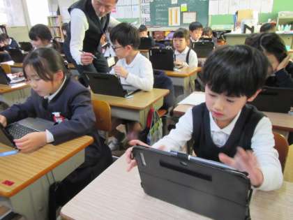 1年生もタブレットを使った学習を進めています。みんなとてもいい表情で取り組んでいます♪