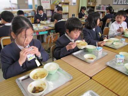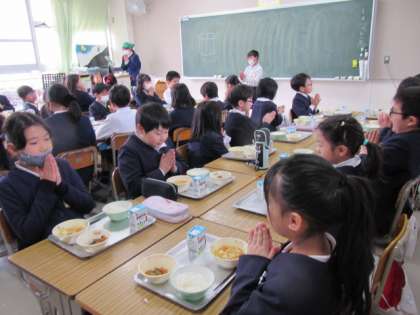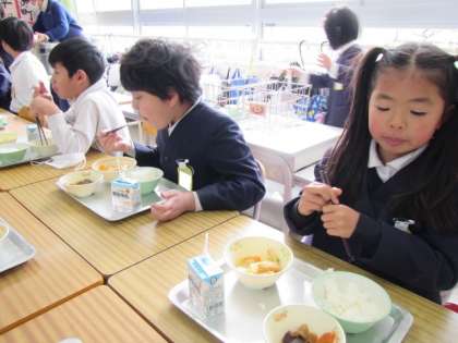 給食の時間が始まりました。今日もおいしくいただきましょう♪