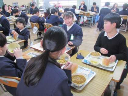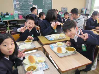 みんな、とても楽しそうに給食の時間を過ごしています♪