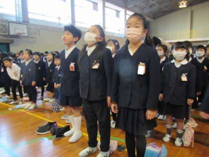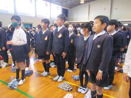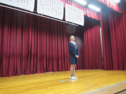 まずは朝のあいさつから。児童会役員が元気いっぱい声を出してくれています♪